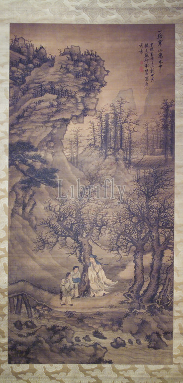 Among Myriad Trees, Xie Shichen (Chinese, 1487-1567), Ming dynasty, period, Jiajing, 1554, ink and color on silk, 76-1/4 x 37-1/4 in. (image) 125-1/2 x 43-1/2 in. (overall), Inscribed: One trail among myriad trees leads into the wintry mountain, Inscribed; In the twelfth lunar month of the thirty-third year of the Jiajing reign in the Imperial Ming dynasty, Xie Shichen from Suzhou sketched this Tang dynasty person's poetic scene. Signed: Sujun Xie Shichen Seals (2), Asian Art