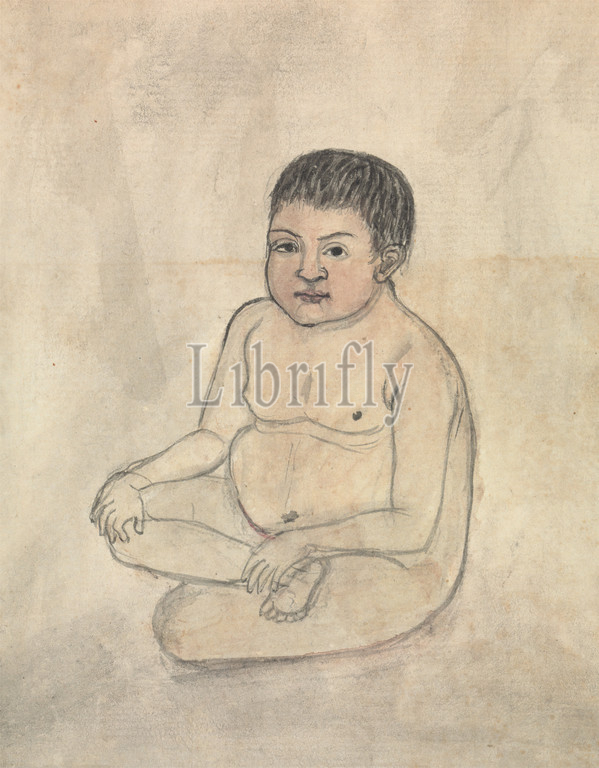 Naked Child, Gangaram Chintaman Tambat, active 1790s, Anglo-Indian, undated, Watercolor and graphite with pen and black ink on medium, slightly textured, cream laid paper, Sheet: 6 3/4 × 5 3/8 inches (17.1 × 13.7 cm)