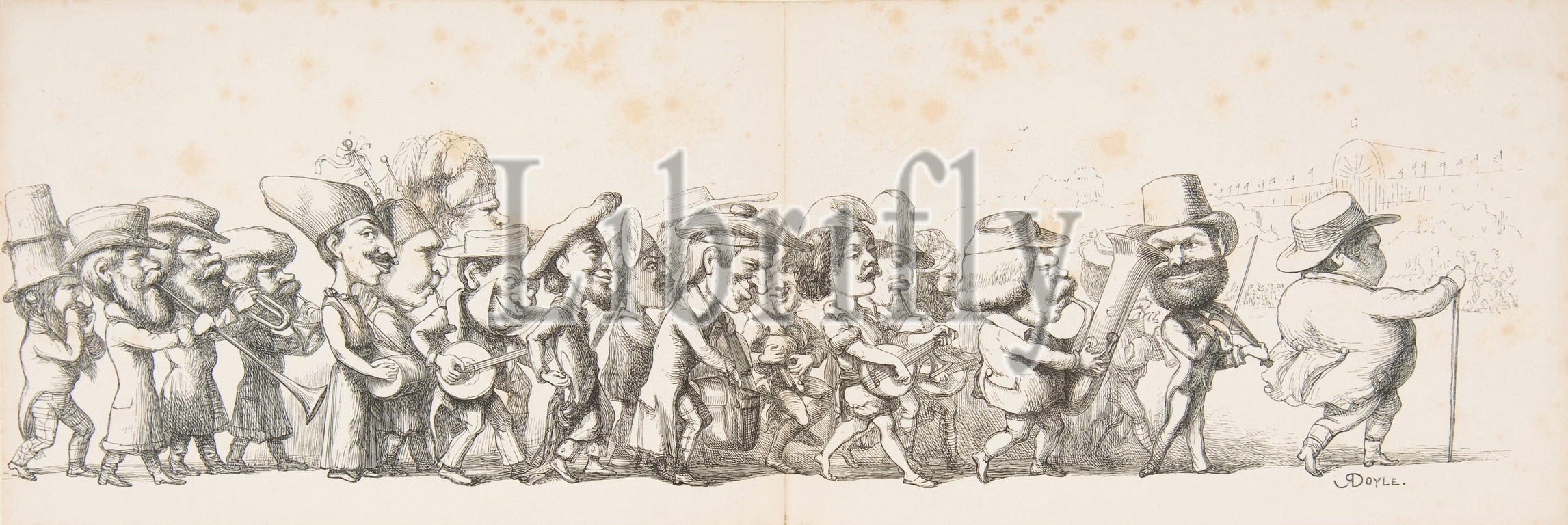 Nations, Pictures, Extra Articles, Visitors, Exhibition, ca, 1851, Wood engraving, sheet, 4 3/4 x 13 7/8, 12.1 35.3 cm, Prints, Richard Doyle, British, London, 1824–1883, Great Exhibition, Works, Industry, held, Crystal Palace, huge glass, cast-iron hall specially, erected, Hyde Park, International displays, devoted, art, technology, manufacturing delighted, six, million, visitors, five-month period