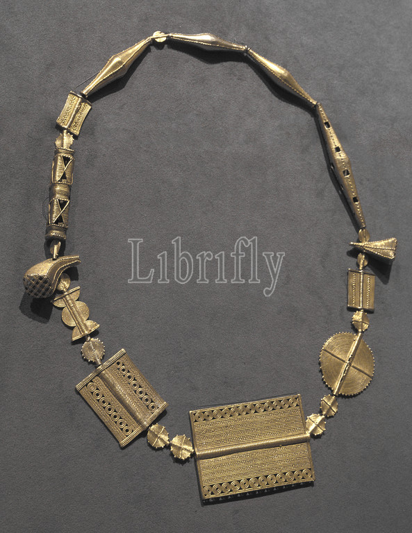necklace, Baule, 1920-1970, cast gold beads, modern fiber string, approximately L:32 in., African Art