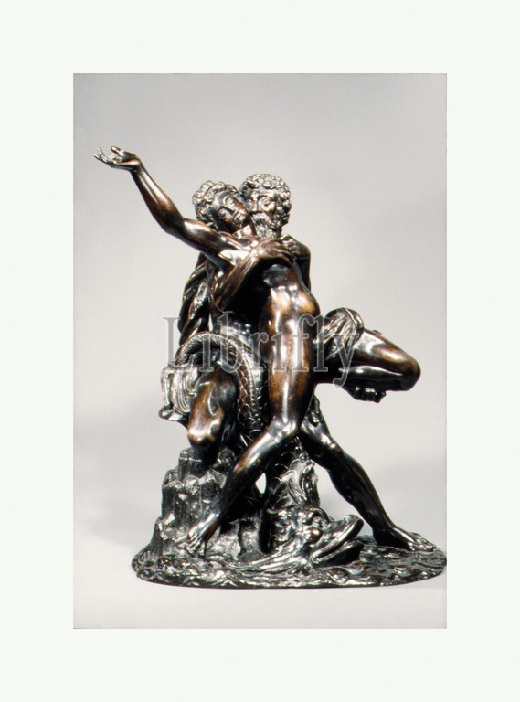 Neptune and Caenis, late 16th–early 17th century, probably Netherlandish, Bronze, with dark brown lacquer patina, Height: 12 1/2 in. (31.8 cm), Sculpture-Bronze, Based on an engraving by Johann Sadeler I (Netherlandish, Brussels 1550–1600/1601 Venice), After a drawing by Bartholomeus Spranger (Netherlandish, Antwerp 1546–1611 Prague), Ovid (Metamorphoses, XII, 195–209) relates Neptune's rape of the maiden Caenis while she walked along the Thessalian shore. The god, sated, promised to grant her any favor in return. Anxious to avoid further attacks of the sort, Caenis asked to become a man