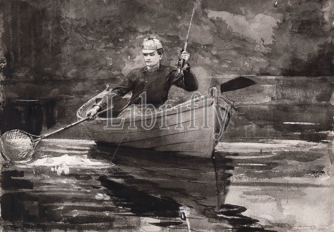 Netting the Fish, 1889, Winslow Homer, American, 1836-1910, United States, Transparent watercolor, heightened with opaque white watercolor, with rewetting, blotting, and scraping, over graphite, on moderately thick, slightly textured, cream wove paper, 353 x 508 mm