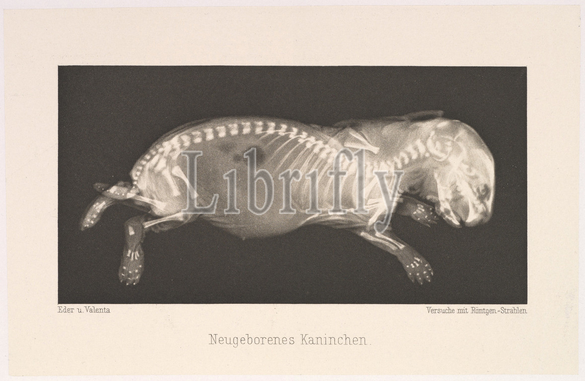 Neugeborenes Kaninchen, 1896, Photogravure, Image: 2 11/16 × 5 7/16 in. (6.9 × 13.8 cm), Photographs, Josef Maria Eder (Austrian, Krems an der Donau, 1855–1944 Kitzbühel) and, Eduard Valenta (Austrian, 1857–1937), Eder was the director of an institute for graphic processes and the author of an early history of photography. With the photochemist Valenta, he produced a portfolio in January 1896, less than a month after Wilhelm Conrad Röntgen published his discovery of X-rays
