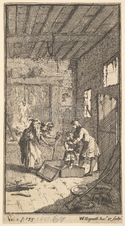 The New Metamorphosis, Plate 4: Invidiosa Releases Fantasio, 1724, Etching and engraving, sheet: 5 1/2 x 3 in. (14 x 7.6 cm), Prints, William Hogarth (British, London 1697–1764 London)