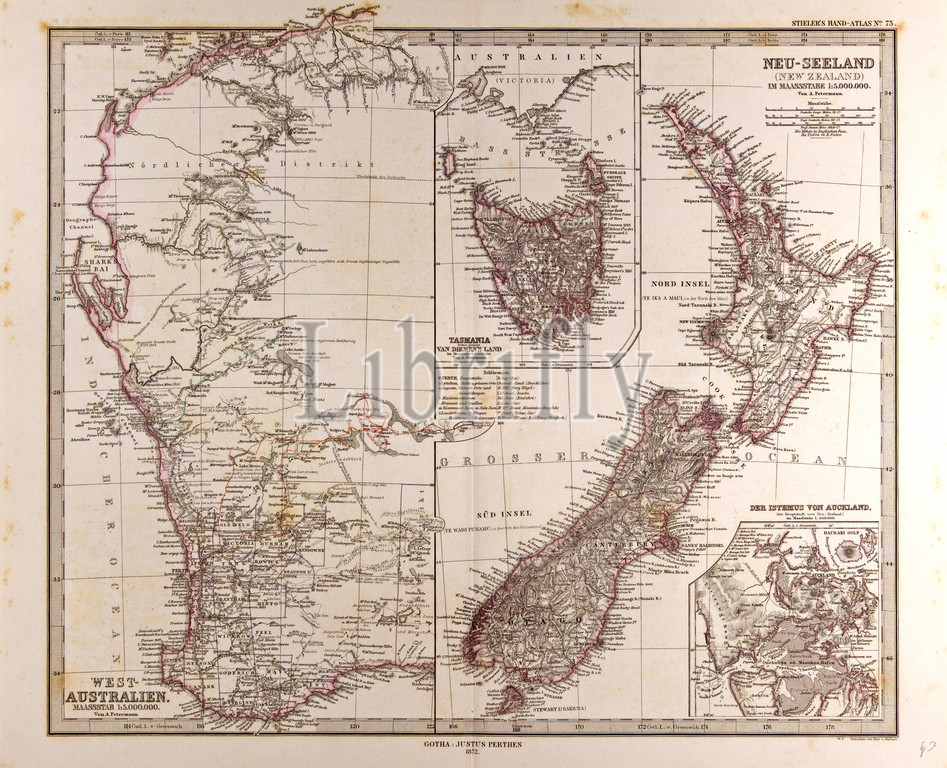 New Zealand Australia, Gotha, Justus Perthes, 1872, Atlas, Book of Maps, Map, Thuringia, Erfurt, Germany, Deutschland, Bundesrepublik Deutschland, BRD, Allemagne, d’Allemagne, republica federal de Alemania, photo, image, West Australia, Tasmania, liszt collection, engraved image, history, illustrative technique, engravement, victorian, arts, culture, retro styled, vintage, retro, arkheia