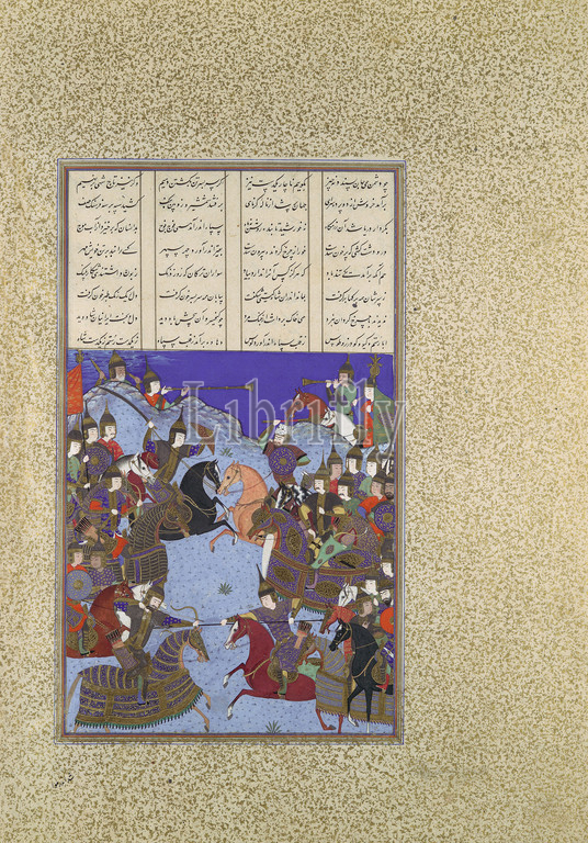 Night Battle, Kai Khusrau, Afrasiyab, Folio367v, Shahnama, Book, Kings, Shah Tahmasp, ca, 1525–30, Iran, Tabriz, Opaque watercolor, ink, silver, gold, paper, Painting, H, 12 1/8 x W, 7 1/4, 30.8, 18.4 cm, Codices, Painting attributed to Bashdan Qara, active ca., 1525–35, nightfall, day-long battle, army, warned, Iranian troops, certainly try, surprise night, attack, Iranians dug, ditch across, Turanian route, doused, lights, maintained silence