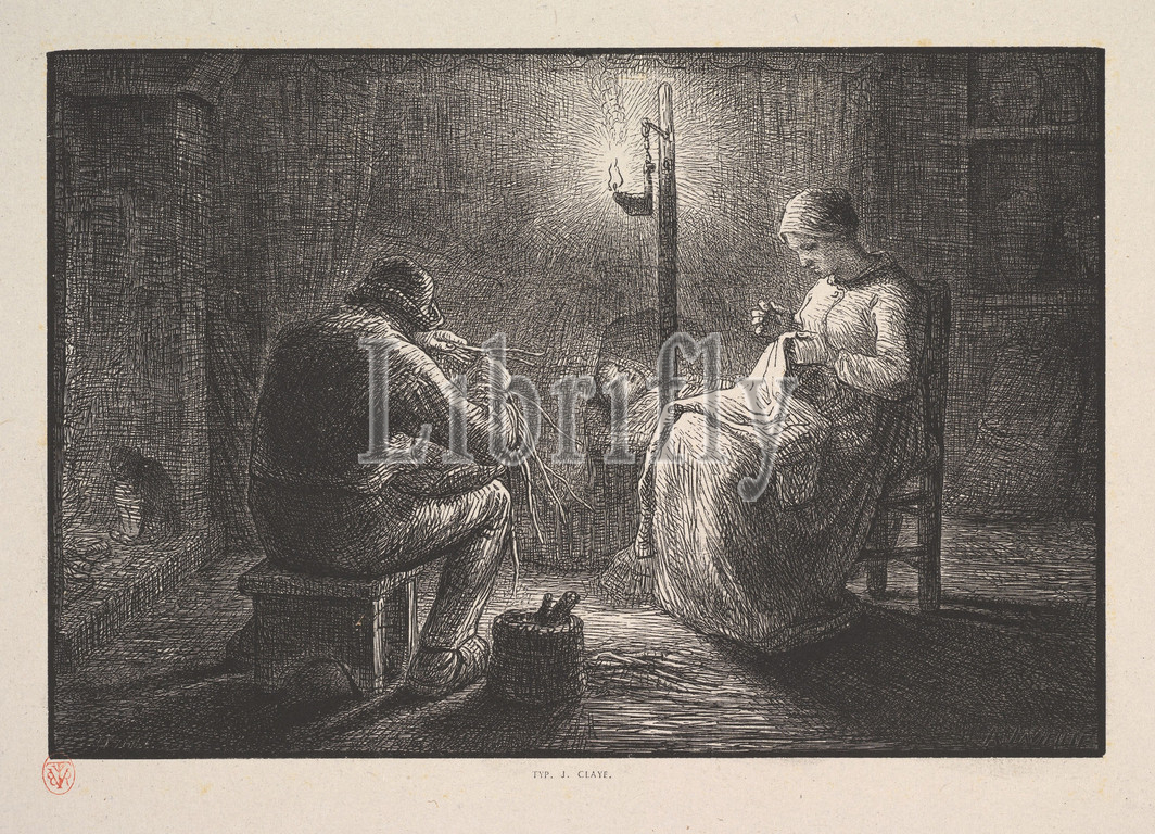 Night, from the series, Four Times of the Day, 1830–75, Wood engraving on chine collé, Block: 5 13/16 x 8 11/16 in. (14.7 x 22 cm), Prints, After Jean-François Millet (French, Gruchy 1814–1875 Barbizon), Jacques-Adrien Lavieille (French, 1818–1862)