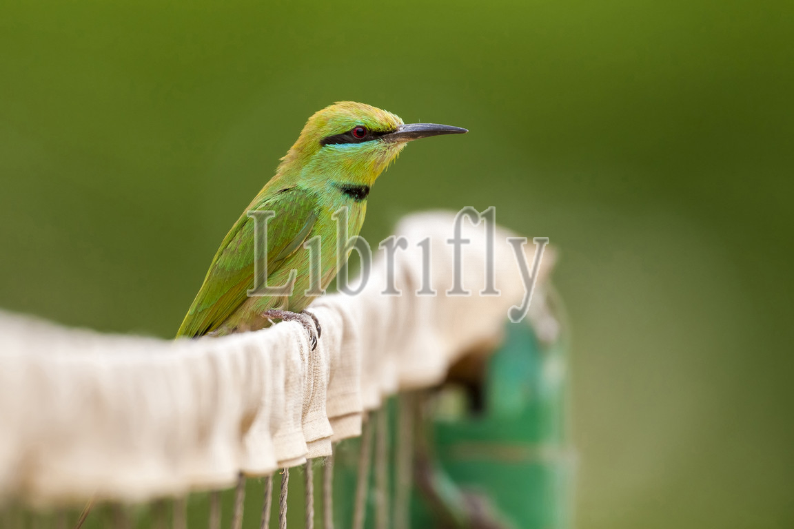 Nile Little Green Bee-eater perched on a net, Nile Valley, Egypt April 2009, Merops orientalis