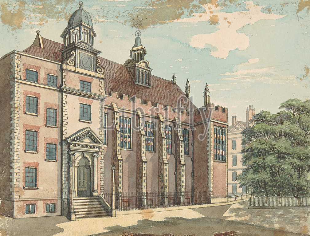 North Front, Temple Hall, Samuel Ireland, active 1760–died 1800, British, 1794, 1800, Watercolor, graphite, pen, black ink, medium, slightly textured, cream wove paper, Sheet, Mount, architectural subject
