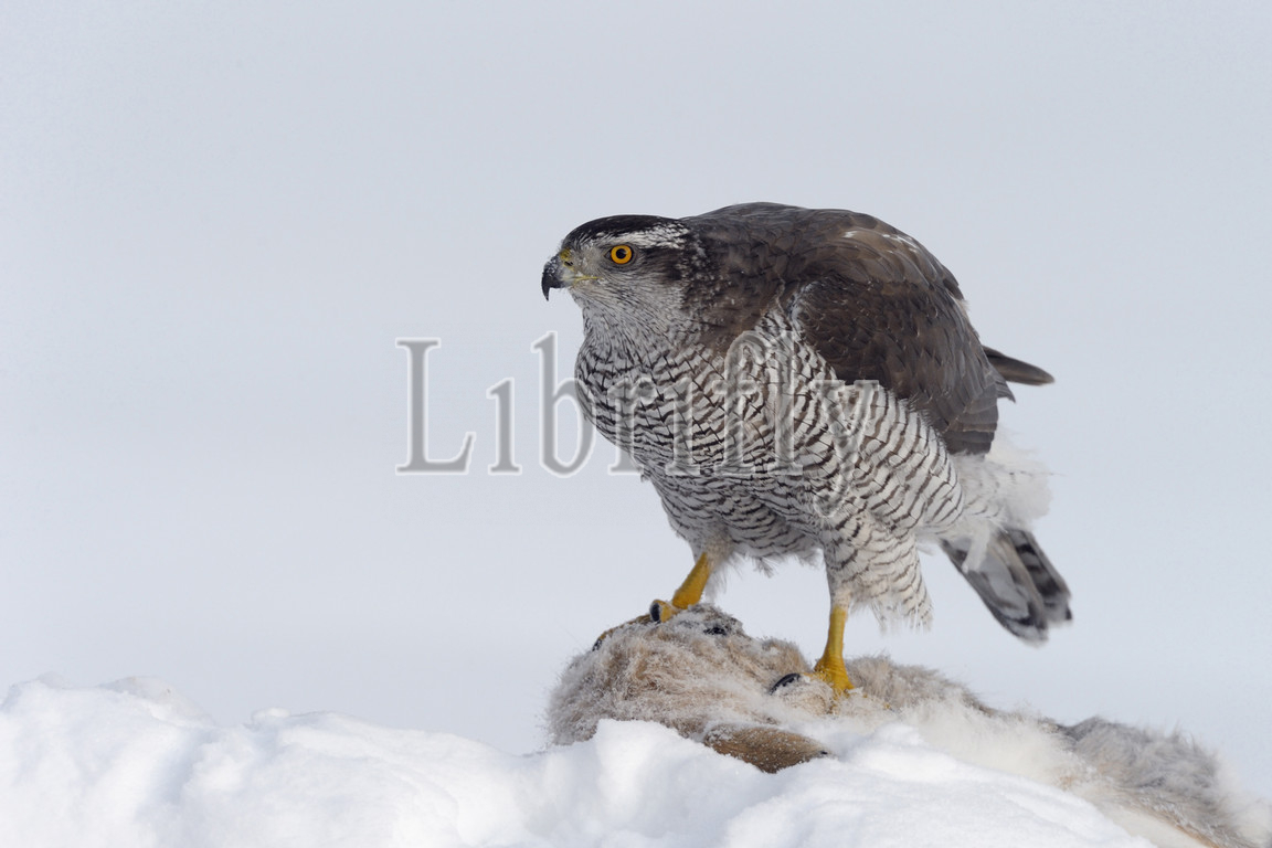 Northern Goshawk male in the snow, Accipiter gentilis