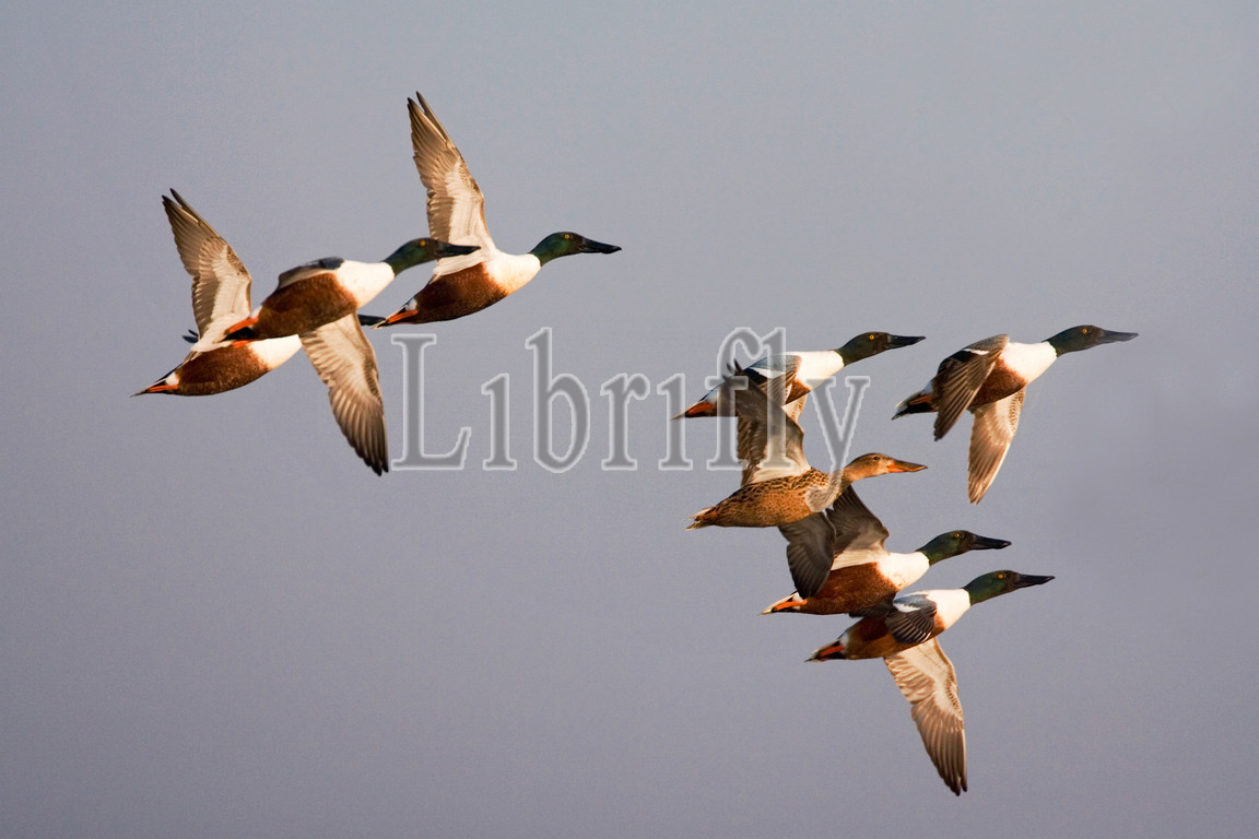 Northern Shoveler, group, flying, Spatula clypeata, nature, bird, animal, wildlife, wild, fauna, natural, feather, sky, beak, wing, outdoor, freedom, colourful, Liszt, Natural History, ornithology, vertebrate animals, photography, color image