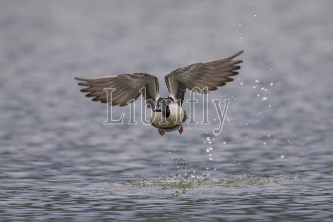 Northern Shoveler male in flight, Anas clypeata, Spatula clypeata, Italy