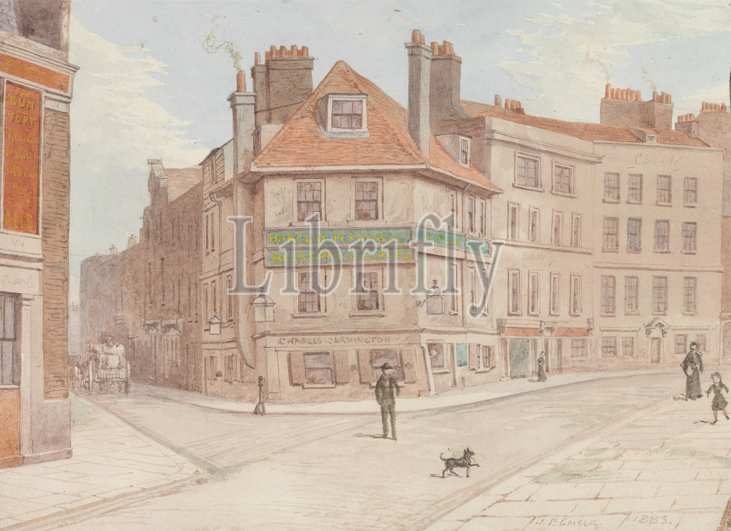 Northumberland Head Inn, Corner, Fort St., Gun St., Spitalfields, John Phillipps Emslie, 1839–1913, British, 1883, Watercolor, graphite, wove paper, Sheet