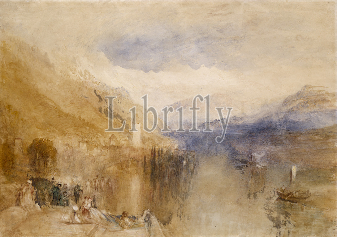 Oberhofen, Lake Thun, Joseph Mallord William Turner (English, 1775-1851), about 1848, watercolor on white wove paper, 14-7/8 x 21-1/2 in., J WHATMAN, 1846