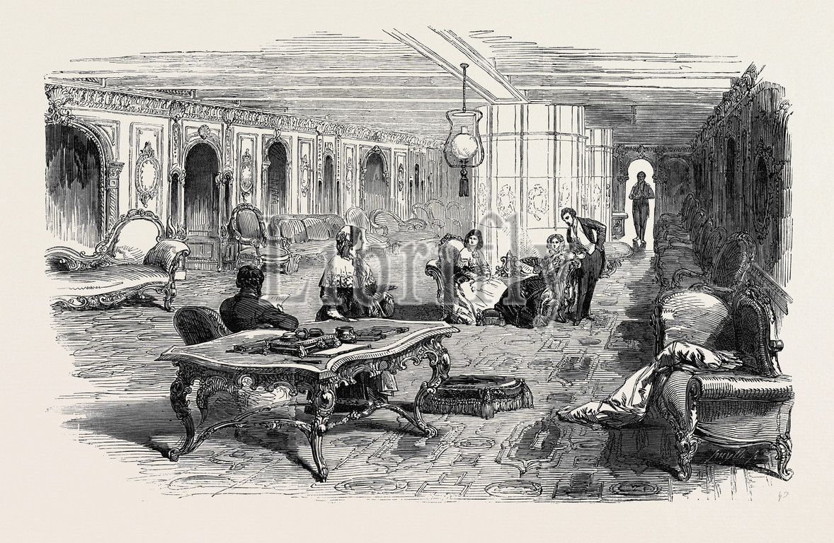 ocean, steam, navigation, grand, saloon, atlantic, 1850 engraving, engraved image, history, illustrative technique, engravement, victorian, arts, culture, retro styled, vintage, retro, arkheia