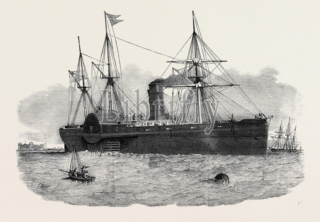 ocean, steam, navigation, united, states, mail, steamship, atlantic, entering, mersey, 1850 engraving, engraved image, history, illustrative technique, engravement, victorian, arts, culture, retro styled, vintage, retro, arkheia