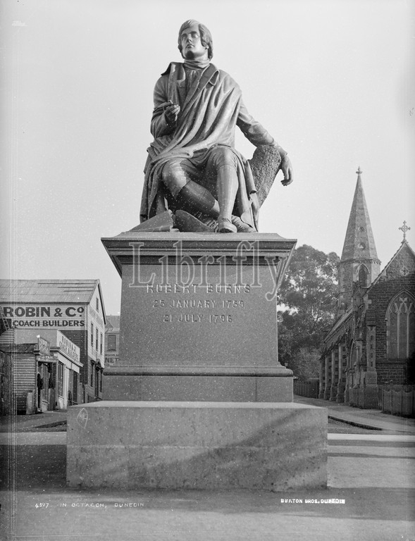 In Octagon, Dunedin, Burton Brothers studio, photography studio, Dunedin, black-and-white photography, Robbie Burns statue.