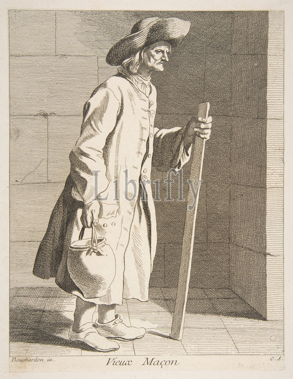 Old Bricklayer, 1737, Etching, engraving, Sheet, 9 1/4 x 7 1/8, 23.5 18.1 cm, Prints, Anne Claude Philippe de Tubières, comte Caylus, French, Paris, 1692–1765, After Edme Bouchardon, Chaumont, 1698–1762