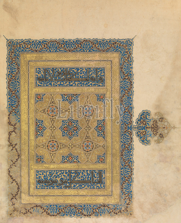 Opening Folio, 26th Volume, Anonymous Baghdad Qur', .H, 706/ .D 1306–7, Iraq, Baghdad, Ink, opaque watercolor, gold, paper, 17 x 13 7/8in, 43.2 35.2cm, Codices, right half, double page opening, volume, Qur', patron, unknown, know, calligrapher, Ahmad ibn, al, Suhrawardi, famous student, master scribe, Yaqut, Musta'simi, illuminator, Muhammad, Aibak, collaborated, several outstanding, Qur'ans