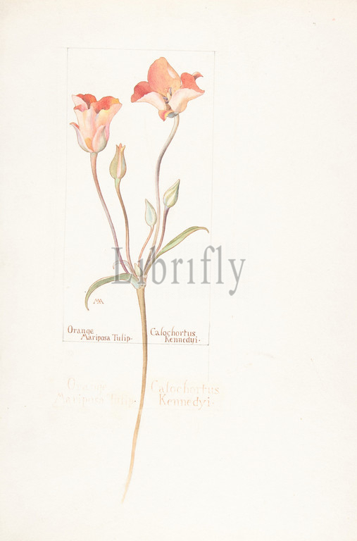 Orange Mariposa Tulip, Calochortus Kennedyi, April 21, 1914, Watercolor, brown ink, graphite, page design indicated, sheet, 13 11/16 x 9 15/16, 34.8 25.2 cm, Drawings, Margaret Neilson Armstrong, American, New York, 1867–1944