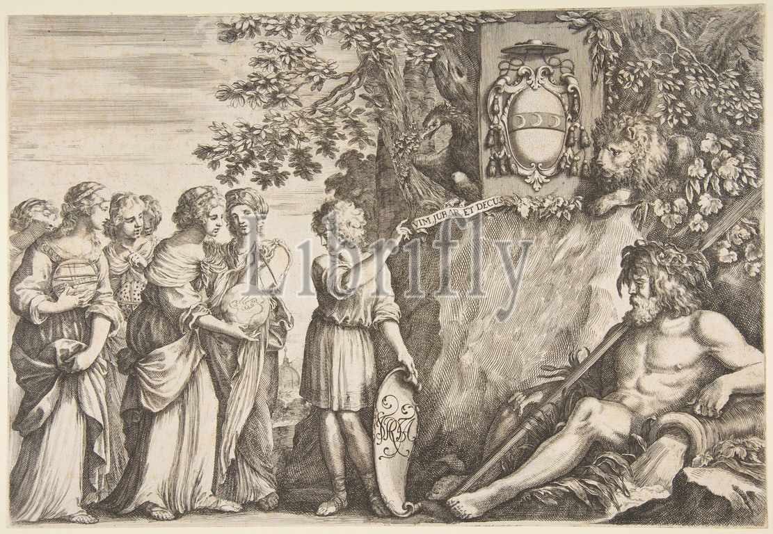 Ornament design, thesis, Strozzi coat, arms, top, ca, 1660, Engraving, etching, second state, two, Sheet, 10 1/4, 14 7/8, 26, 37.8 cm, Prints, Designed by Stefano della Bella, Italian, Florence, 1610–1664