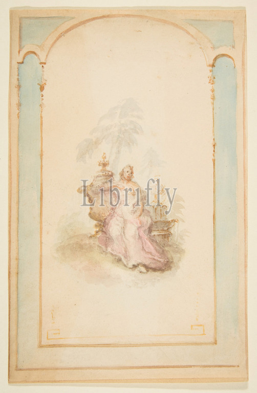 Ornament Design for Wall Panel, 19th century, Watercolor on wove paper, sheet: 8 9/16 x 5 1/2 in. (21.8 x 14 cm), Drawings, Anonymous, French, 19th century