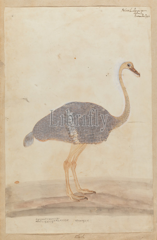 Ostrich, Gangaram Chintaman Tambat, active 1790s, Anglo-Indian, Watercolor, gouache, graphite, pen, black ink, medium, slightly textured, cream laid paper, Sheet, animal art