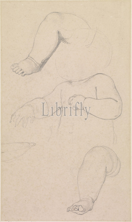 Oure Ladye of Saturday Night, Three Studies of Arms and Legs of Child on Madonna's Knees, 1846-47 Ford Madox Brown, Art Movement, Pre-Raphaelite, Drawing, Pencil, Sketch, Child, Study