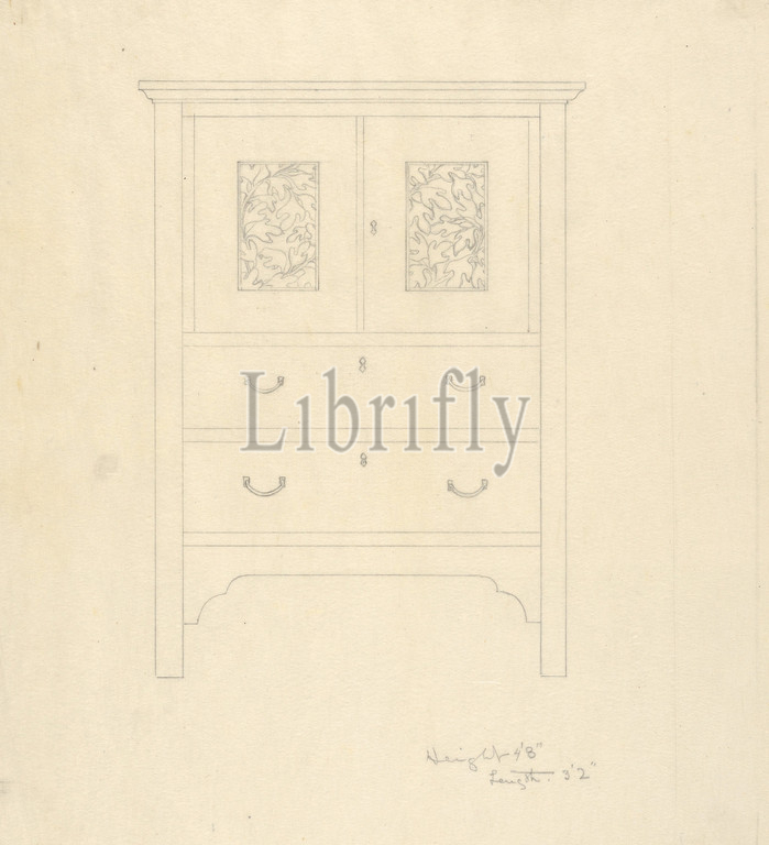 Outline Drawing, Sassafras Linen Press, 1904, Graphite, sheet, 10 11/16 x 9 3/16, 27.2 23.3 cm, Byrdcliffe Arts and Crafts Colony, American, 1902–1915, Ralph Radcliffe Whitehead, born England, Yorkshire, 1854–1929, Santa Barbara, California, Inspired, ideas, Arts, Crafts Movement, Englishman Ralph, studied under, John, Ruskin, Oxford, establish, own ideal, self-sustaining art, community, United States