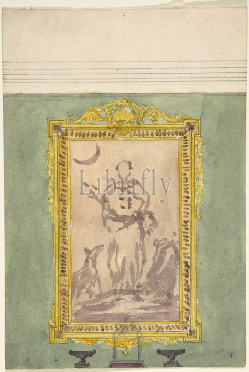 Overmantel Picture with Diana, 19th century, Ink and watercolor, Anonymous, British, 19th century