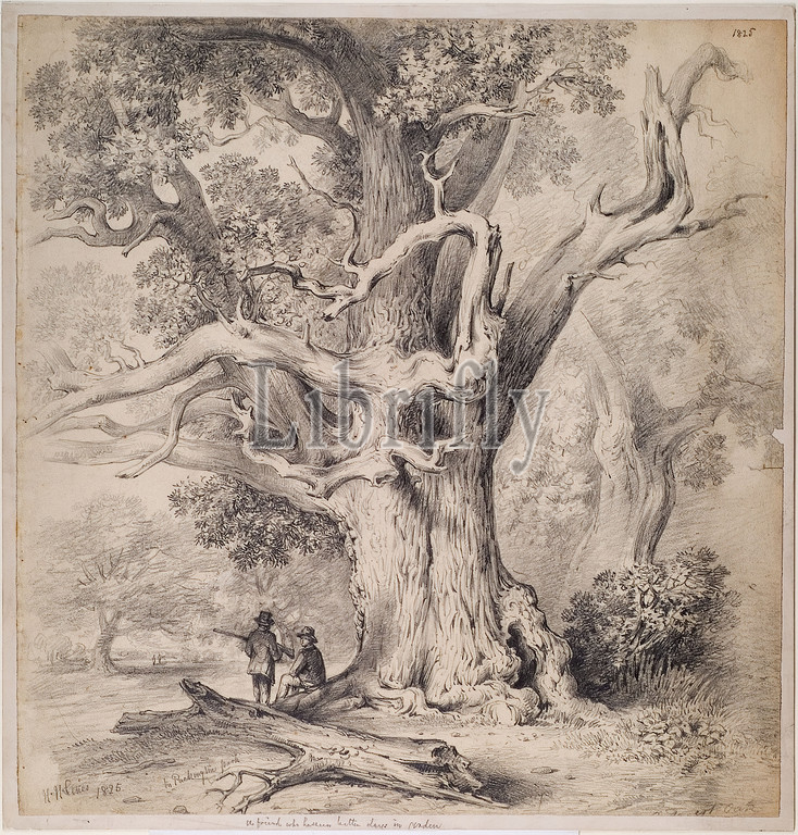 In Packington Park, Warwickshire, 1825 Henry Harris Lines, Tree, Landscape, 19th Century, Drawing, Pencil, Topographical Views, Midlands, England, Warwickshire, Woodland, Arms, Gun
