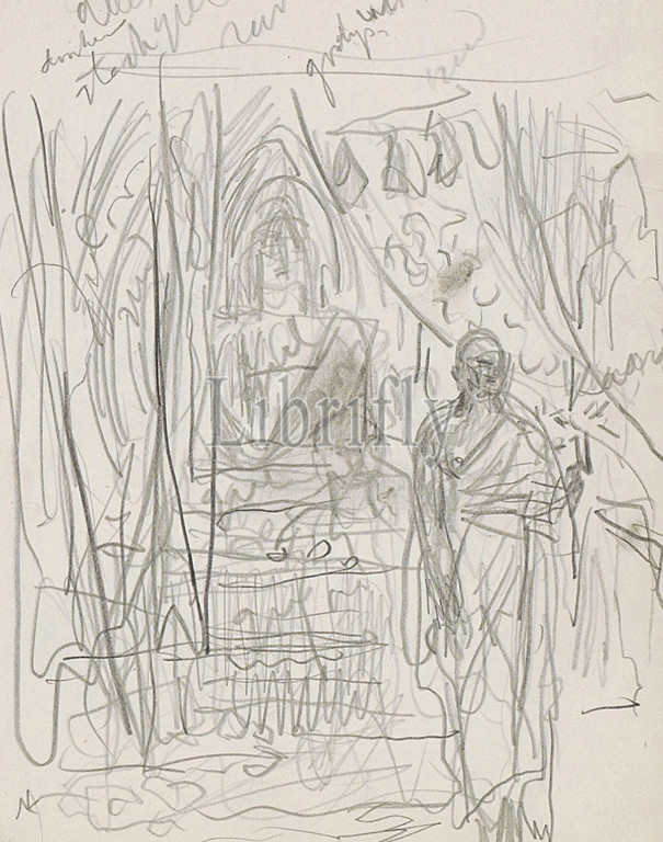 Page 126 from a sketchbook with 75 pages, Indian in a temple in front of a statue of a Hindu god., draughtsman: Marius Bauer, India, 1924 - 1925, Marius Bauer, 1924 - 1925