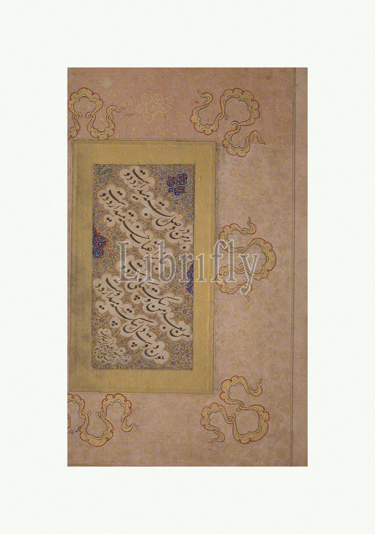 Page, Calligraphy, 17th century, Attributed, Iran, Opaque watercolor, ink, gold, paper, 6 1/2 x 3 1/4, 16.5 8.3 cm, Codices