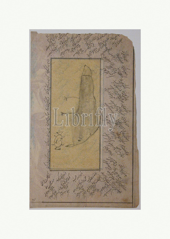Page, Calligraphy, Scribbled Bird, Insect?, 16th–17th century, Attributed, Iran, Ink, opaque watercolor, paper, 8 13/16 x 5 9/16in, 22.4 14.1cm, Codices