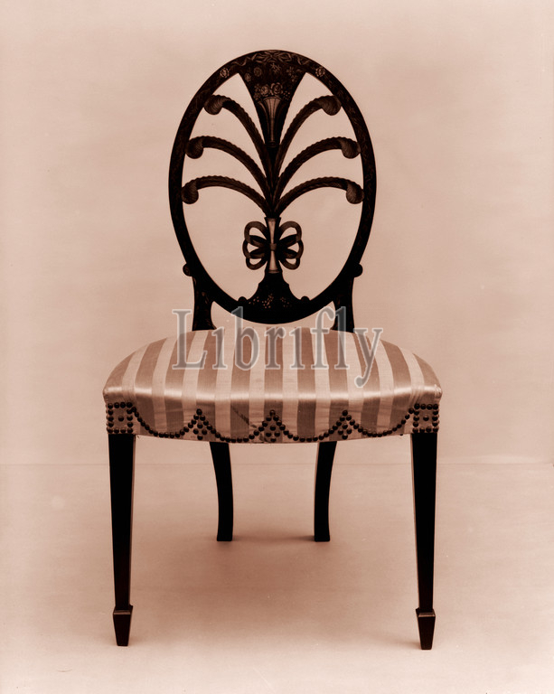 Pair, side chairs, 1795–1800, Philadelphia, Pennsylvania, United States, American, Painted maple, white pine, 38 1/2 x 21 18 1/2, 97.8 54.6 47 cm, Furniture, design, oval-back chair, based, engraving, George Hepplewhite, Cabinet-Maker, Upholsterer, Guide, 1788, chairs thought, set, twenty-four, oval back, painted white, blackish brown
