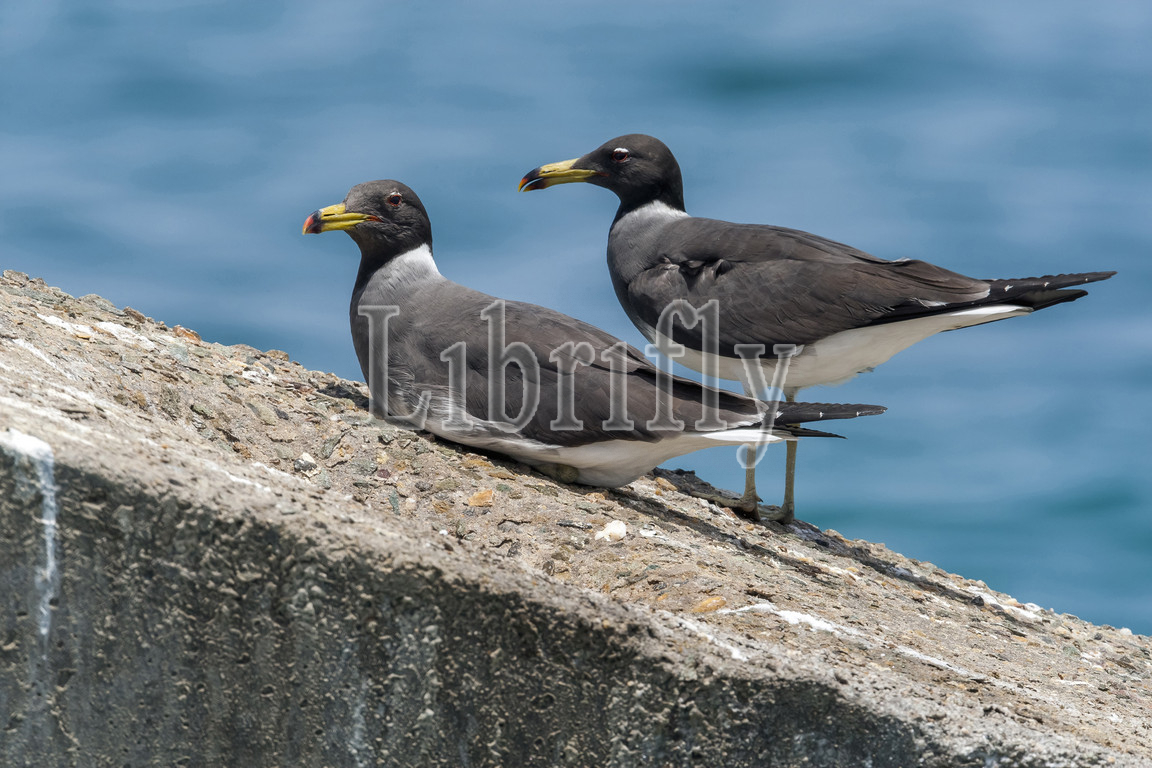 Pair of a Sooty Gull sitting on a wall along the Red Sea coast in Egypt May 2009, Ichthyaetus hemprichii