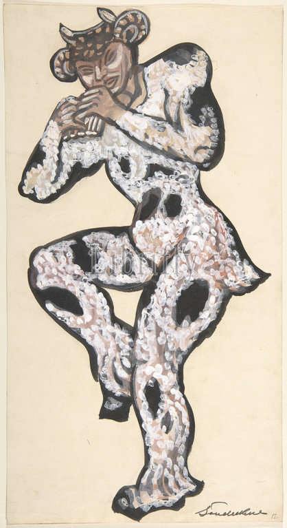 Pan, first half 20th century, brush and black ink, gouache, watercolor, sheet: 14 7/8 x 7 15/16 in. (37.8 x 20.2 cm), Drawings, Sergey Sudeykin (Russian, Smolensk 1882–1946 Nyack)