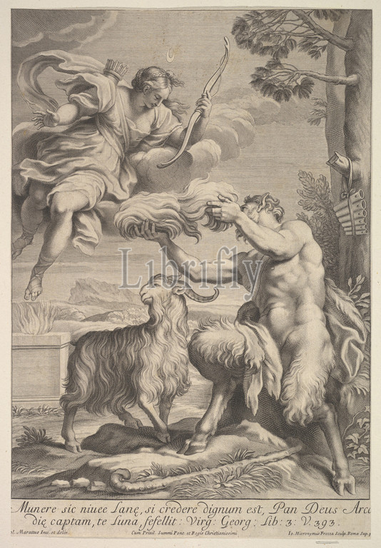 Pan foiled, Diana, 1675–1741, Engraving, sheet, 15 3/4 x 20 1/2, 40 52 cm, Prints, Giovanni Girolamo Frezza, Italian, 1659–1741, After Carlo Maratti, Camerano, 1625–1713, Rome