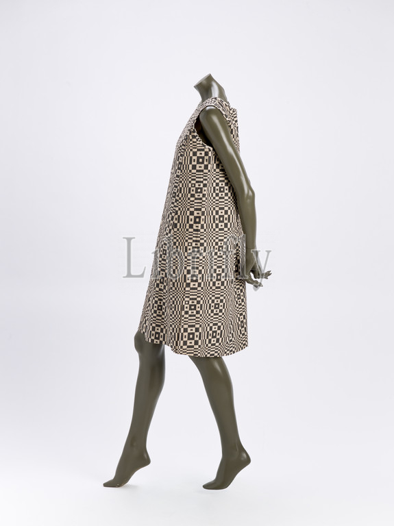 paper dress Paper-Caper Op Art Dress, Scott, Designer, American, 1966, paper, wood pulp, rayon mesh, patented, Dura weave, screen printed, 38-1/2 x 25-1/2, label, Paper-Caper, Textile, Fashion Arts