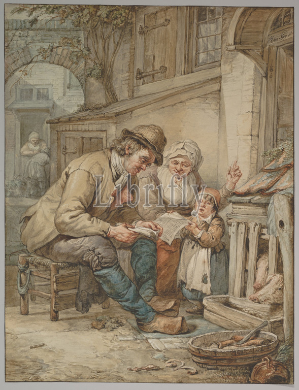 Parents Teaching, Daughter, Song, early 19th century, Watercolor, pen, brown, black inks, framing line, ink, Sheet, 17 9/16 x 13 9/16, 44.6 34.4 cm, Drawings, Abraham van Strij, Dutch, Dordrecht, 1753–1826
