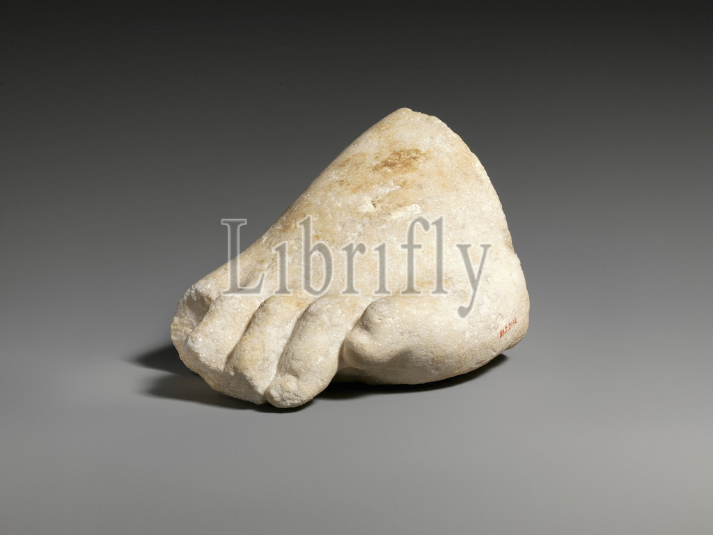 Part, left foot, colossal marble statue, Roman, 3rd–2nd century B.C, Greek, Marble, 4 3/4 x 7 5/16, 12.1 18.6 cm, Stone Sculpture