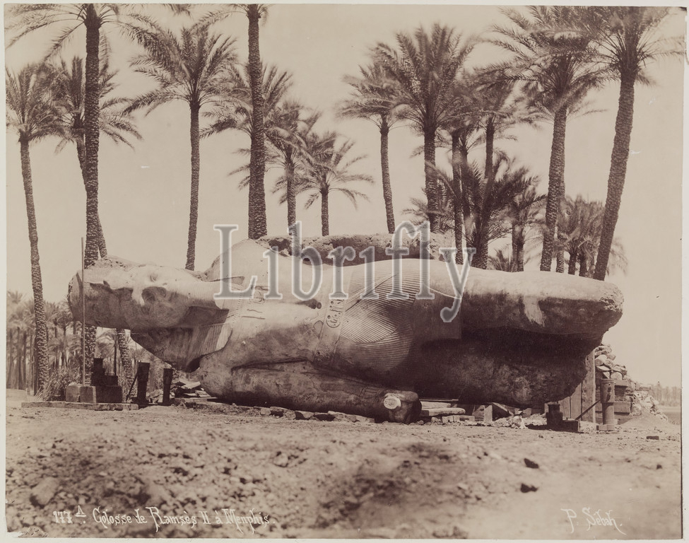 J. Pascal Sébah, Turkish, active ca. 1823-1886, Statue of Ramesses II Resting on Its Side at Memphis, 19th century, albumen print, Image: 8 1/8 × 10 1/4 inches (20.6 × 26 cm)