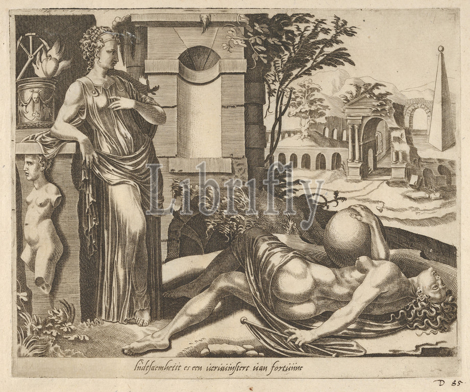 Patience, Victor, Fortune, Six Sayings, ca, 1560, Engraving, Plate, 8 1/16, 9 5/8, 20.4, 24.4 cm, Prints, Dirk Volckertsz Coornhert, Netherlandish, Amsterdam, 1519/22–1590, Gouda