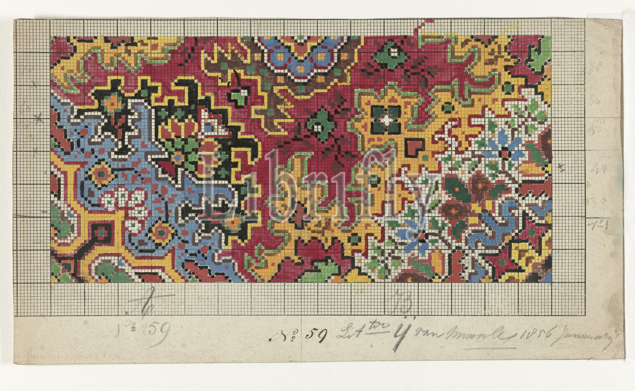 pattern drawing, 85 model drawings, carpets, Deventer Carpet Factory, Deventer Tapijtfabriek, c, 1854, 1864, paper, gouache, paint