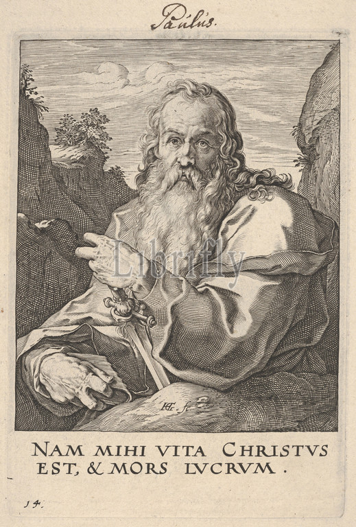 St. Paul, from Christ, the Apostles and St. Paul with the Creed, ca. 1589, Engraving; second state of two, plate: 5 7/8 x 4 1/8 in. (15 x 10.4 cm), Prints, Hendrick Goltzius (Netherlandish, Mühlbracht 1558–1617 Haarlem)