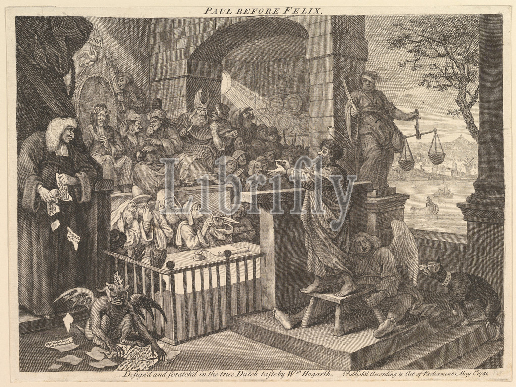 Paul Before Felix Burlesqued, May 1751, Etching and engraving with some mezzotint tone; second state of five, sheet: 10 1/4 x 13 3/4 in. (26 x 35 cm), Prints, William Hogarth (British, London 1697–1764 London)