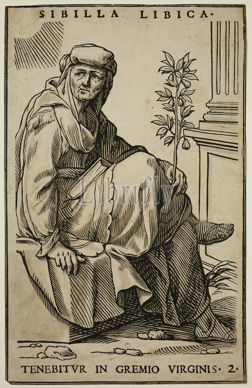 Paul Maupin, French, 1553-1647, Jacques Stella, 1596-1657, Sibilla Libica, 1624, 1625, woodcut printed, black ink, gray watercolor, off-white laid paper, Block, sheet, 12 1/8