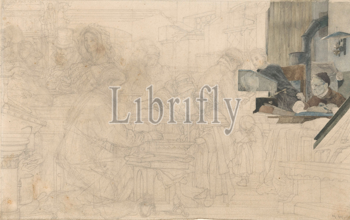 Pawnshop, Mount, Piety, pawnbroker, lombard, Matthijs Maris, mentioned, object, c, 1856, 1857, paper, pencil, watercolor, paint, brush