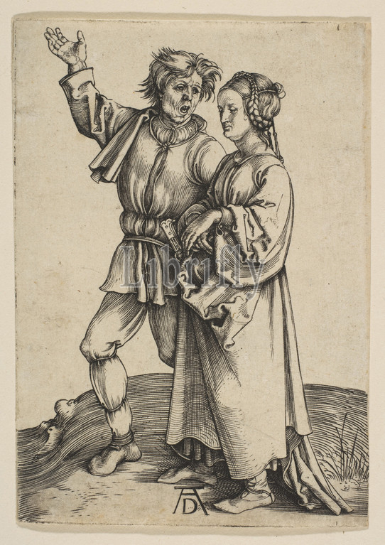 The Peasant and His Wife, ca. 1497, Engraving, Sheet: 4 3/16 × 2 15/16 in. (10.6 × 7.5 cm), Prints, Albrecht Dürer (German, Nuremberg 1471–1528 Nuremberg)