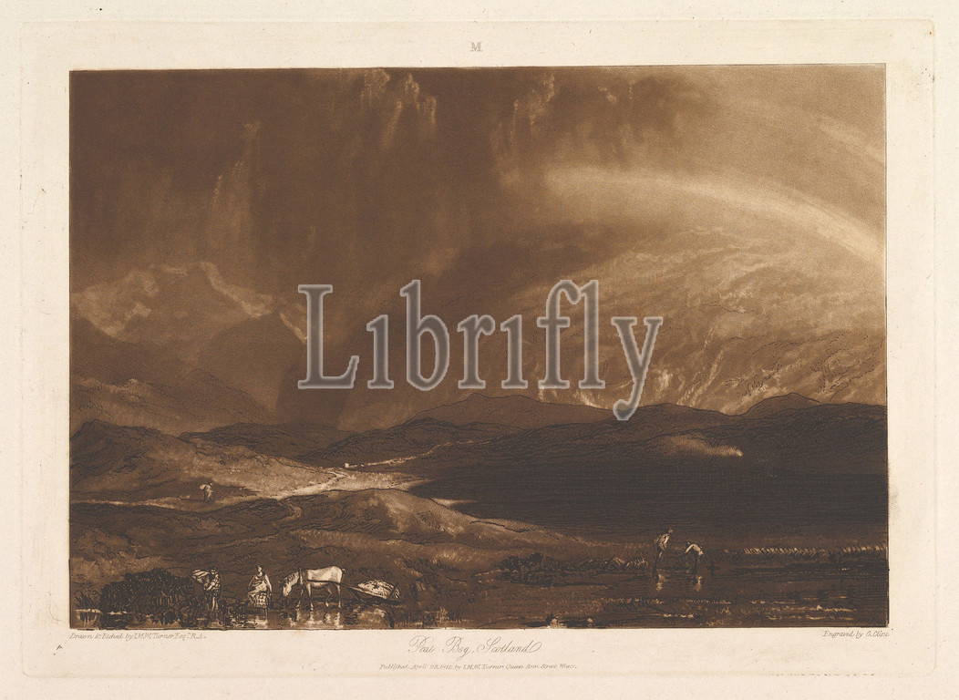 Peat Bog, Scotland, Liber Studiorum, part IX, plate 45, April 23, 1812, Etching, aquatint, mezzotint, fifth state, five, plate, 7 x 10 5/16, 17.8 26.2 cm, Prints, Designed and etched by Joseph Mallord William Turner, British, London, 1775–1851, Turner distilled, ideas, landscape, Latin, Book, Studies, series, seventy prints, plus, frontispiece published, 1807, 1819, establish, compositions, brown watercolor, drawings, etched outlines, copper plates